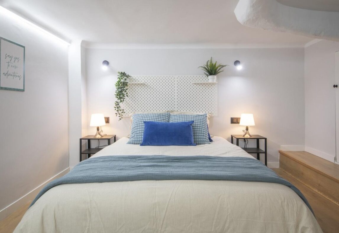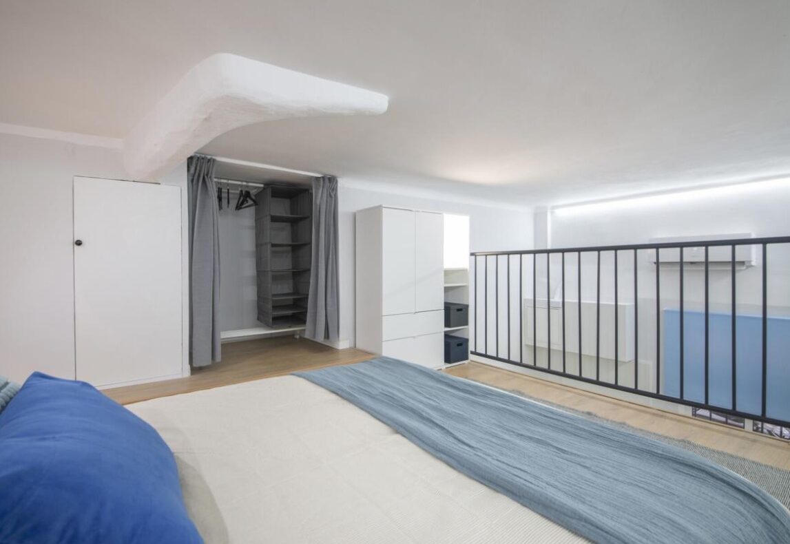 • Planta superior (altillo): Acogedora zona de descanso tipo suite, con cama doble y vestidor integrado.